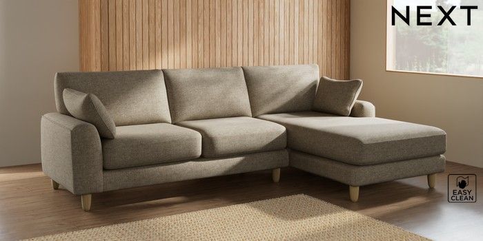 7.2.10 Campbell Medium Sofa Chaise - Right Hand Woven Chenille Easy Clean Mid Natural High Leg - Light | Made Click here to use our website with more accessibility support, for example screen readers