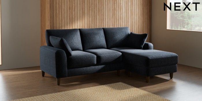 7.2.10 Campbell Small Sofa Chaise - Universal Boucle Chenille Dark Slate Blue High Leg - Mid | Made Click here to use our website with more accessibility support, for example screen readers