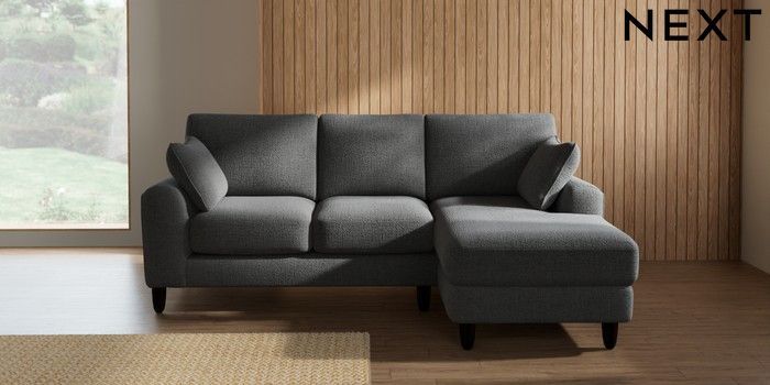 7.2.10 Campbell Small Sofa Chaise - Universal Chunky Texture Dark Grey High Leg - Dark | Made Click here to use our website with more accessibility support, for example screen readers