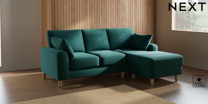 7.2.10 Campbell Small Sofa Chaise - Universal Fine Chenille Easy Clean Dark Juniper Green High Leg - Light | Made Click here to use our website with more accessibility support, for example screen readers