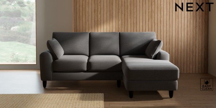 7.2.10 Campbell Small Sofa Chaise - Universal Fine Chenille Easy Clean Dark Smoke Grey High Leg - Dark | Made Click here to use our website with more accessibility support, for example screen readers