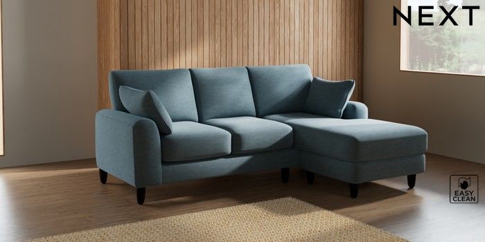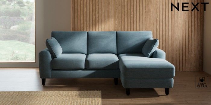 7.2.10 Campbell Small Sofa Chaise - Universal Fine Chenille Easy Clean Mid Blue High Leg - Dark | Made Click here to use our website with more accessibility support, for example screen readers