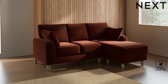 7.2.10 Campbell Small Sofa Chaise - Universal Plush Velvet Easy Clean Ginger Orange High Leg - Light | Made Click here to use our website with more accessibility support, for example screen readers