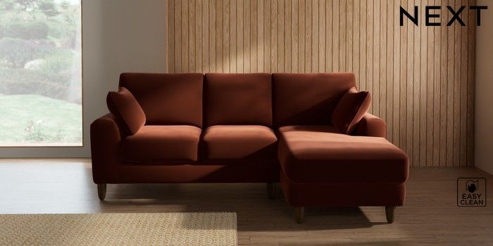 7.2.10 Campbell Small Sofa Chaise - Universal Plush Velvet Easy Clean Ginger Orange High Leg - Mid | Made Click here to use our website with more accessibility support, for example screen readers