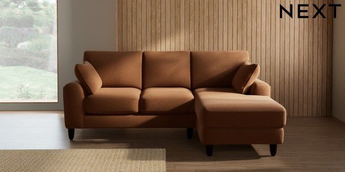 7.2.10 Campbell Small Sofa Chaise - Universal Ripple Chenille Mid Rust Brown High Leg - Dark | Made Click here to use our website with more accessibility support, for example screen readers