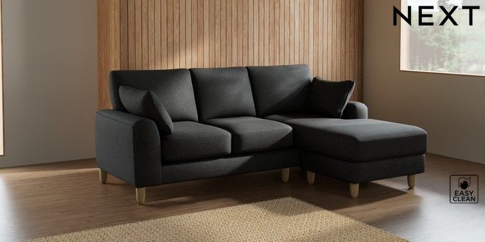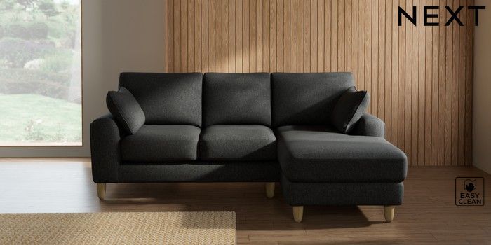 7.2.10 Campbell Small Sofa Chaise - Universal Tweedy Blend Easy Clean Charcoal Grey High Leg - Light | Made Click here to use our website with more accessibility support, for example screen readers