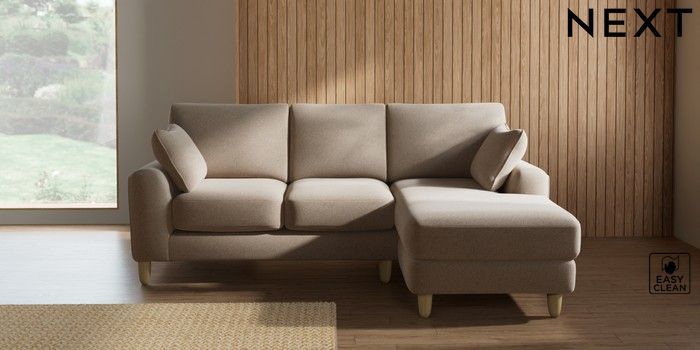7.2.10 Campbell Small Sofa Chaise - Universal Tweedy Blend Easy Clean Light Dove Natural High Leg - Light | Made Click here to use our website with more accessibility support, for example screen readers