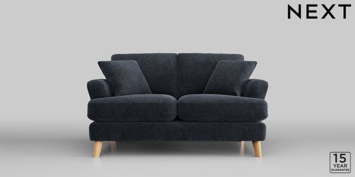 7.2.10 Conway Relaxed Sit 2 Seater Small Sofa Boucle Chenille Dark Slate Blue Low Retro Tapered - Light | Made Click here to use our website with more accessibility support, for example screen readers