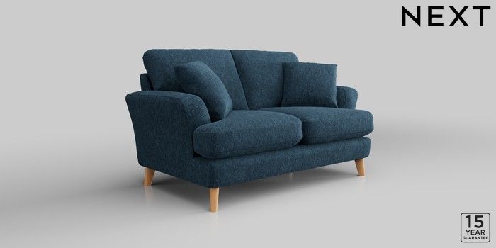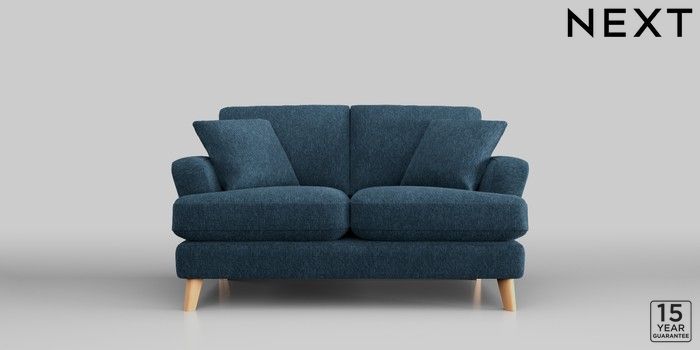 7.2.10 Conway Relaxed Sit 2 Seater Small Sofa Cotswold Chenille Dark Blue Low Retro Tapered - Light | Made Click here to use our website with more accessibility support, for example screen readers