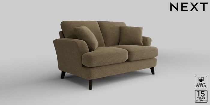 7.2.10 Conway Relaxed Sit 2 Seater Small Sofa Fine Chenille Easy Clean Dark Moss Green Low Retro Tapered - Dark | Made Click here to use our website with more accessibility support, for example screen readers