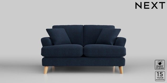 7.2.10 Conway Relaxed Sit 2 Seater Small Sofa Fine Chenille Easy Clean Dark Navy Blue Low Retro Tapered - Light | Made Click here to use our website with more accessibility support, for example screen readers