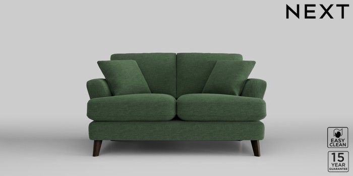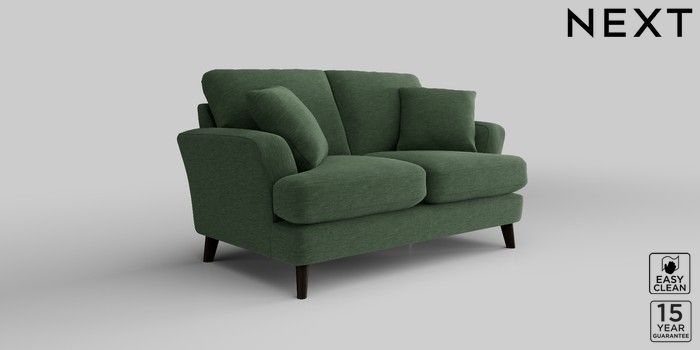 7.2.10 Conway Relaxed Sit 2 Seater Small Sofa Fine Chenille Easy Clean Mid Khaki Green Low Retro Tapered - Dark | Made Click here to use our website with more accessibility support, for example screen readers