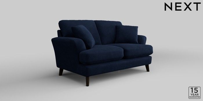 7.2.10 Conway Relaxed Sit 2 Seater Small Sofa Luxe Chenille Navy Blue Low Retro Tapered - Dark | Made Click here to use our website with more accessibility support, for example screen readers