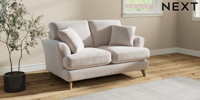 7.2.10 Conway Relaxed Sit 2 Seater Small Sofa Multi Weave Oyster Low Retro Tapered - Light | Made Click here to use our website with more accessibility support, for example screen readers
