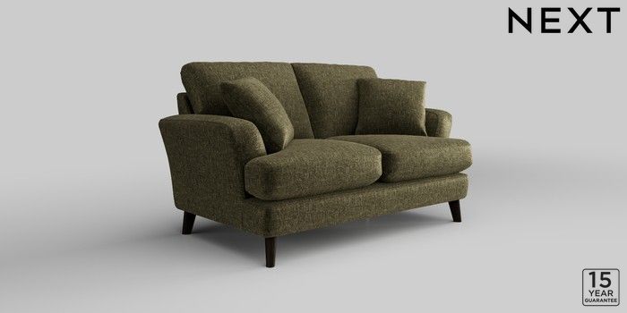 7.2.10 Conway Relaxed Sit 2 Seater Small Sofa Plush Chenille Moss Green Low Retro Tapered - Dark | Made Click here to use our website with more accessibility support, for example screen readers