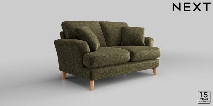 7.2.10 Conway Relaxed Sit 2 Seater Small Sofa Plush Chenille Moss Green Low Retro Tapered - Light | Made Click here to use our website with more accessibility support, for example screen readers