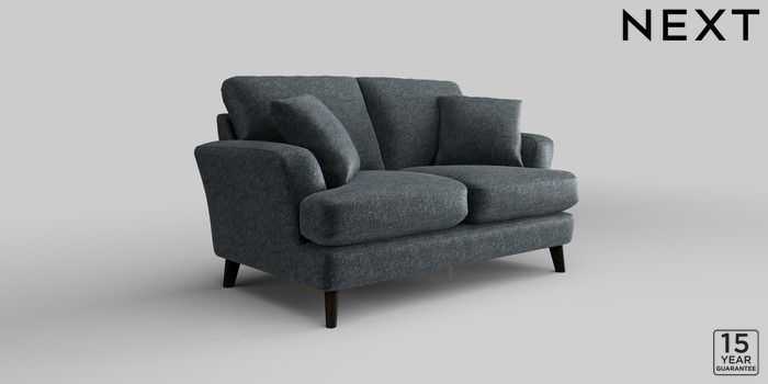 7.2.10 Conway Relaxed Sit 2 Seater Small Sofa Plush Chenille Slate Blue Low Retro Tapered - Dark | Made Click here to use our website with more accessibility support, for example screen readers