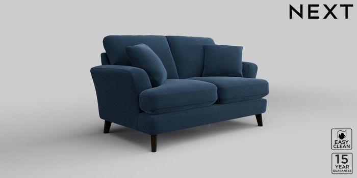 7.2.10 Conway Relaxed Sit 2 Seater Small Sofa Plush Velvet Easy Clean Airforce Blue Low Retro Tapered - Dark | Made Click here to use our website with more accessibility support, for example screen readers