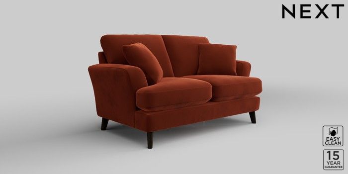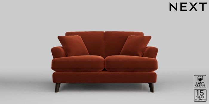 7.2.10 Conway Relaxed Sit 2 Seater Small Sofa Plush Velvet Easy Clean Ginger Orange Low Retro Tapered - Dark | Made Click here to use our website with more accessibility support, for example screen readers