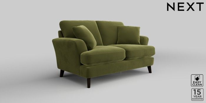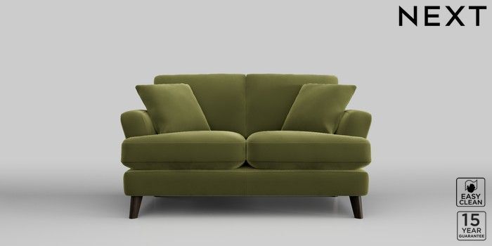 7.2.10 Conway Relaxed Sit 2 Seater Small Sofa Plush Velvet Easy Clean Mid Olive Green Low Retro Tapered - Dark | Made Click here to use our website with more accessibility support, for example screen readers
