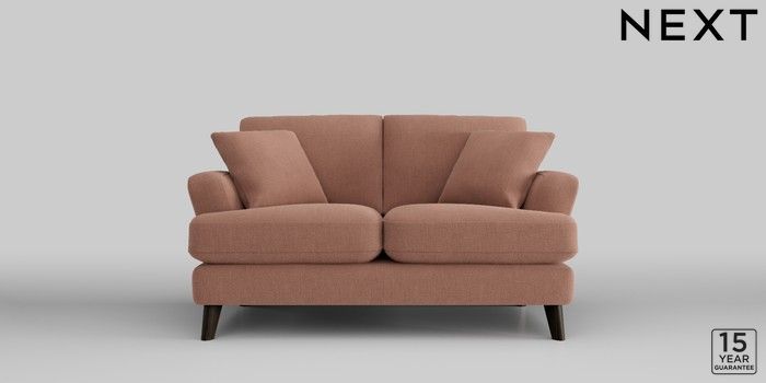 7.2.10 Conway Relaxed Sit 2 Seater Small Sofa Relaxed Linen Look Light Rust Brown Low Retro Tapered - Dark | Made Click here to use our website with more accessibility support, for example screen readers