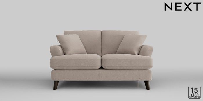 7.2.10 Conway Relaxed Sit 2 Seater Small Sofa Relaxed Linen Look Mid Natural Low Retro Tapered - Dark | Made Click here to use our website with more accessibility support, for example screen readers