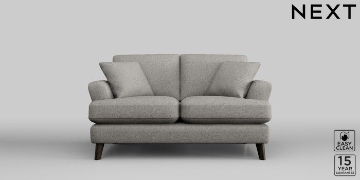 7.2.10 Conway Relaxed Sit 2 Seater Small Sofa Woven Chenille Easy Clean Light Grey Low Retro Tapered - Dark | Made Click here to use our website with more accessibility support, for example screen readers