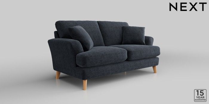 7.2.10 Conway Relaxed Sit 2 Seater Sofa Boucle Chenille Dark Slate Blue Low Retro Tapered - Light | Made Click here to use our website with more accessibility support, for example screen readers