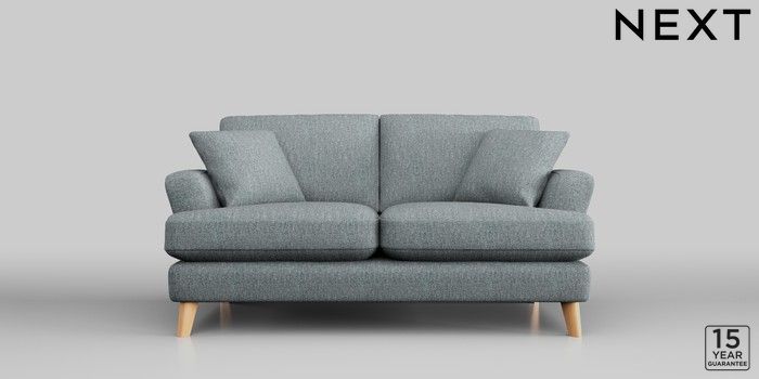 7.2.10 Conway Relaxed Sit 2 Seater Sofa Chunky Weave Mid Blue Low Retro Tapered - Light | Made Click here to use our website with more accessibility support, for example screen readers