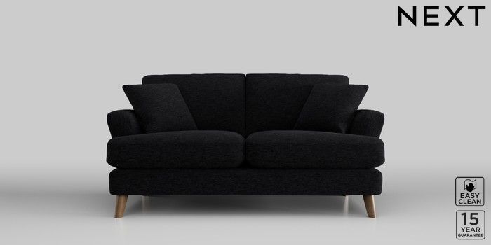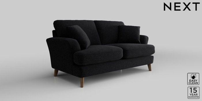 7.2.10 Conway Relaxed Sit 2 Seater Sofa Fine Chenille Easy Clean Black Low Retro Tapered - Mid | Made Click here to use our website with more accessibility support, for example screen readers