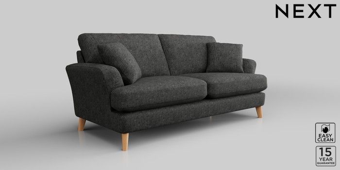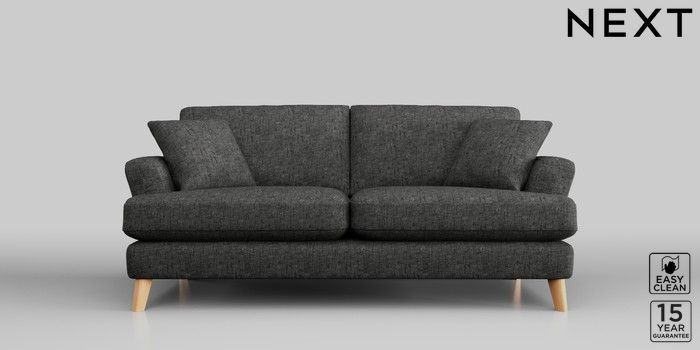 7.2.10 Conway Relaxed Sit 3 Seater Small Sofa Boucle Weave Easy Clean Charcoal Grey Low Retro Tapered - Light | Made Click here to use our website with more accessibility support, for example screen readers