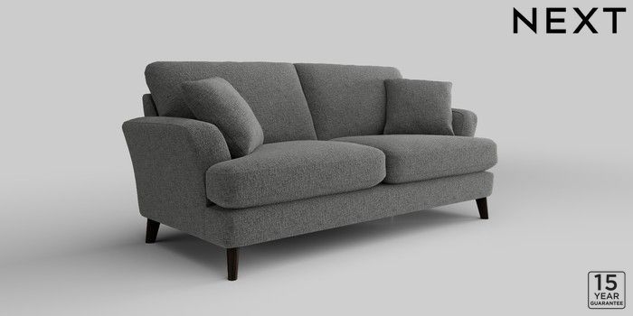 7.2.10 Conway Relaxed Sit 3 Seater Small Sofa Chunky Chenille Dark Grey Low Retro Tapered - Dark | Made Click here to use our website with more accessibility support, for example screen readers