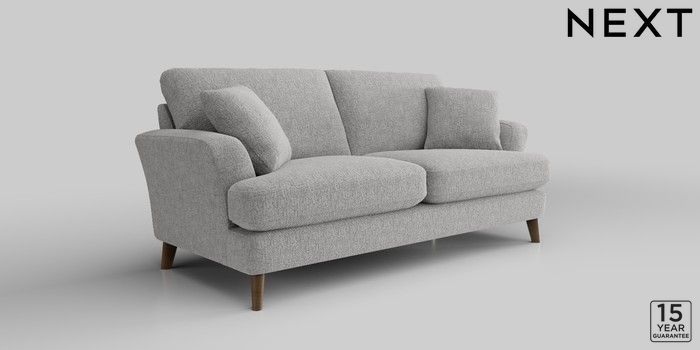 7.2.10 Conway Relaxed Sit 3 Seater Small Sofa Chunky Chenille Light Grey Low Retro Tapered - Mid | Made Click here to use our website with more accessibility support, for example screen readers