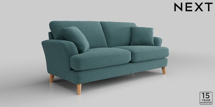 7.2.10 Conway Relaxed Sit 3 Seater Small Sofa Chunky Chenille Mid Teal Green Low Retro Tapered - Light | Made Click here to use our website with more accessibility support, for example screen readers