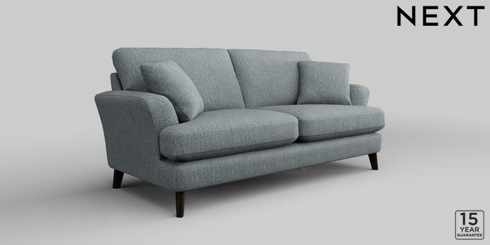 7.2.10 Conway Relaxed Sit 3 Seater Small Sofa Chunky Weave Mid Blue Low Retro Tapered - Dark | Made Click here to use our website with more accessibility support, for example screen readers