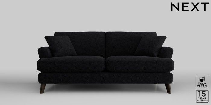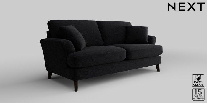 7.2.10 Conway Relaxed Sit 3 Seater Small Sofa Fine Chenille Easy Clean Black Low Retro Tapered - Dark | Made Click here to use our website with more accessibility support, for example screen readers
