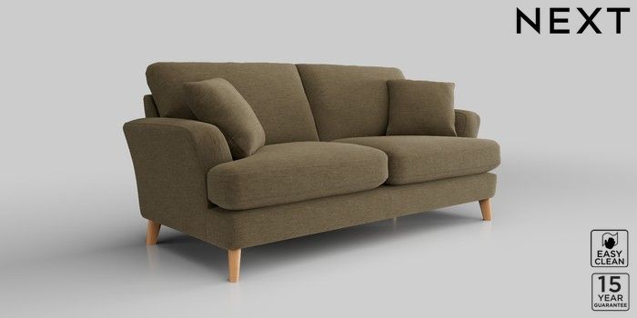 7.2.10 Conway Relaxed Sit 3 Seater Small Sofa Fine Chenille Easy Clean Dark Moss Green Low Retro Tapered - Light | Made Click here to use our website with more accessibility support, for example screen readers