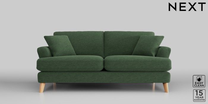 7.2.10 Conway Relaxed Sit 3 Seater Small Sofa Fine Chenille Easy Clean Mid Khaki Green Low Retro Tapered - Light | Made Click here to use our website with more accessibility support, for example screen readers