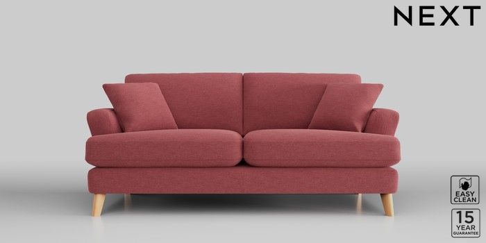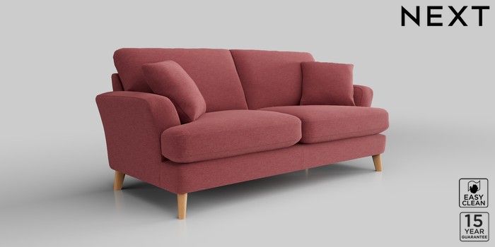 7.2.10 Conway Relaxed Sit 3 Seater Small Sofa Fine Chenille Easy Clean Mid Pink Low Retro Tapered - Light | Made Click here to use our website with more accessibility support, for example screen readers