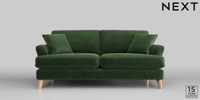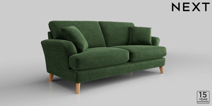 7.2.10 Conway Relaxed Sit 3 Seater Small Sofa Luxe Chenille Dark Green Low Retro Tapered - Light | Made Click here to use our website with more accessibility support, for example screen readers