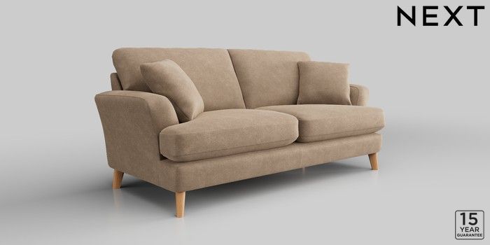 7.2.10 Conway Relaxed Sit 3 Seater Small Sofa Luxe Chenille Mid Camel Beige Low Retro Tapered - Light | Made Click here to use our website with more accessibility support, for example screen readers