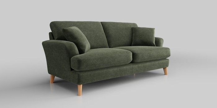 7.2.10 Conway Relaxed Sit 3 Seater Small Sofa Luxe Chenille Mid Green Low Retro Tapered - Light | Made Click here to use our website with more accessibility support, for example screen readers
