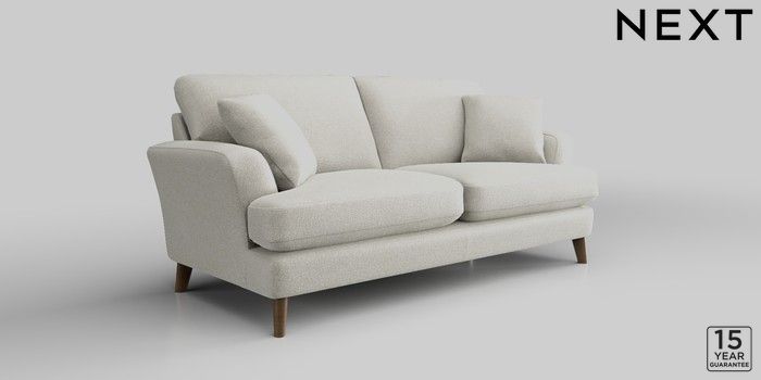 7.2.10 Conway Relaxed Sit 3 Seater Small Sofa Plush Chenille Oyster Low Retro Tapered - Mid | Made Click here to use our website with more accessibility support, for example screen readers