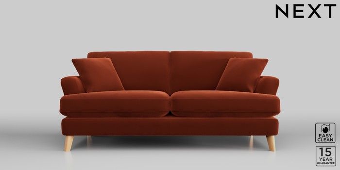 7.2.10 Conway Relaxed Sit 3 Seater Small Sofa Plush Velvet Easy Clean Ginger Orange Low Retro Tapered - Light | Made Click here to use our website with more accessibility support, for example screen readers
