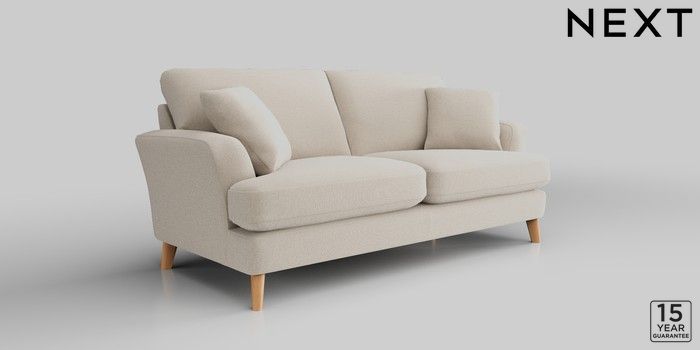 7.2.10 Conway Relaxed Sit 3 Seater Small Sofa Studio Chenille Oyster Low Retro Tapered - Light | Made Click here to use our website with more accessibility support, for example screen readers