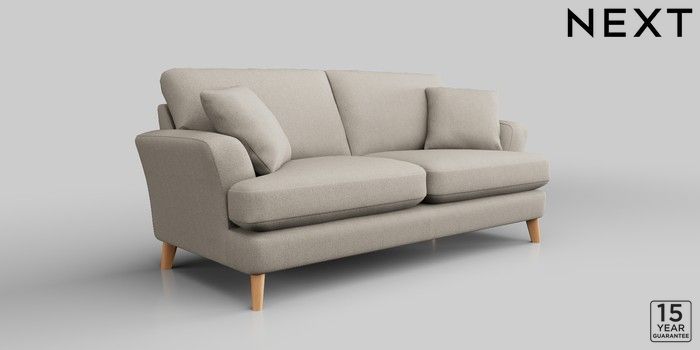 7.2.10 Conway Relaxed Sit 3 Seater Small Sofa Tweedy Chenille Oyster Low Retro Tapered - Light | Made Click here to use our website with more accessibility support, for example screen readers