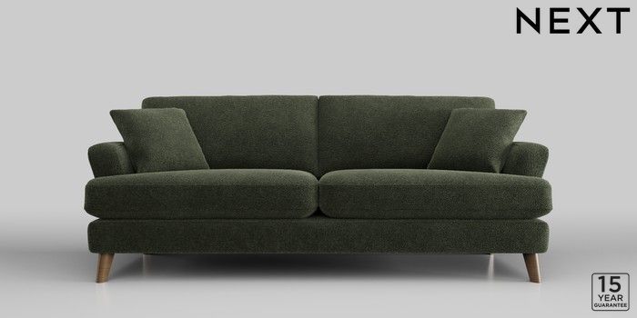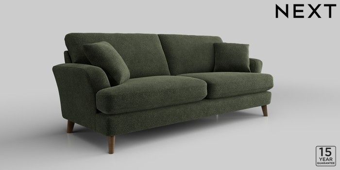 7.2.10 Conway Relaxed Sit 3 Seater Sofa Boucle Chenille Dark Moss Green Low Retro Tapered - Mid | Made Click here to use our website with more accessibility support, for example screen readers