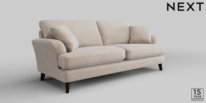 7.2.10 Conway Relaxed Sit 3 Seater Sofa Boucle Chenille Oyster Low Retro Tapered - Dark | Made Click here to use our website with more accessibility support, for example screen readers