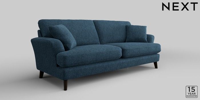 7.2.10 Conway Relaxed Sit 3 Seater Sofa Cotswold Chenille Dark Blue Low Retro Tapered - Dark | Made Click here to use our website with more accessibility support, for example screen readers