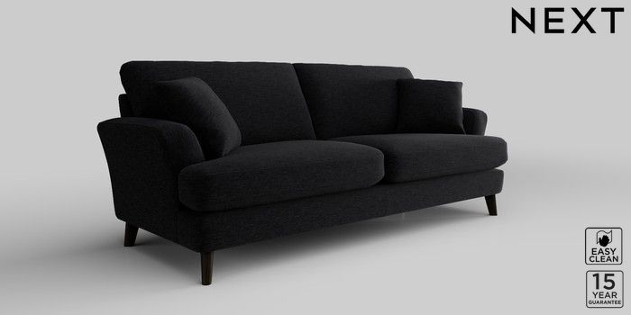 7.2.10 Conway Relaxed Sit 3 Seater Sofa Fine Chenille Easy Clean Black Low Retro Tapered - Dark | Made Click here to use our website with more accessibility support, for example screen readers